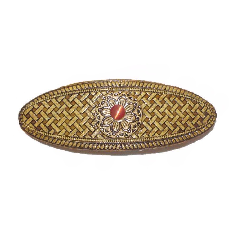 Заколка береста тисненая, с камнем узкий овал