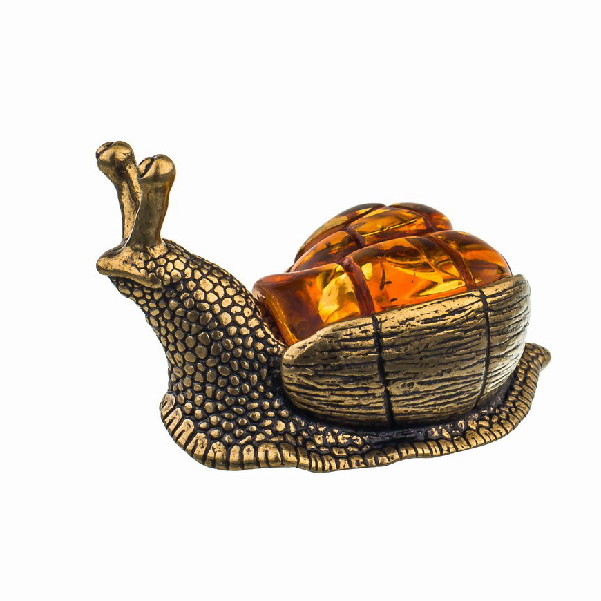 Сувенир Улитка с домиком бронза, с янтарем