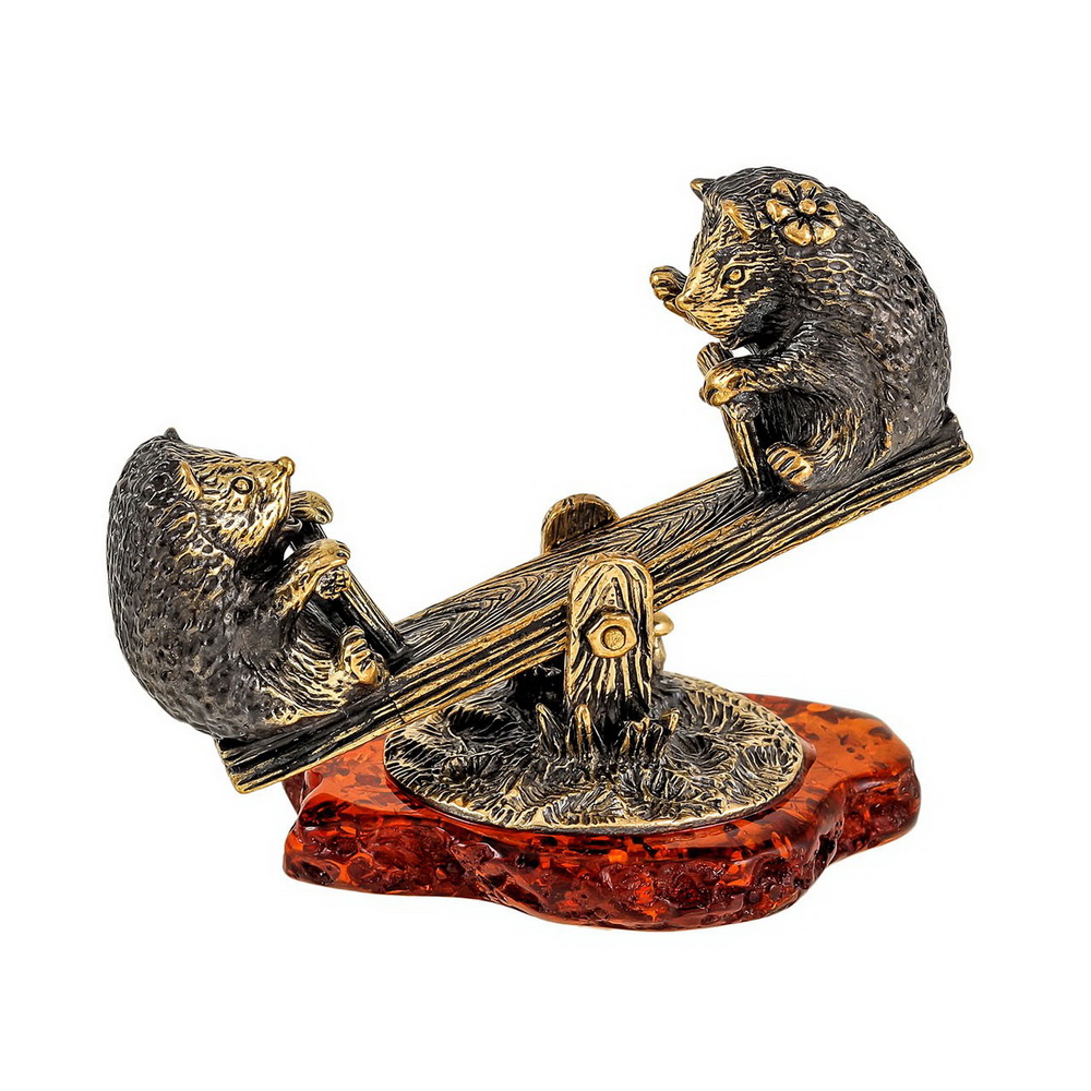 Сувенир Ежики на качели, бронза, янтарь