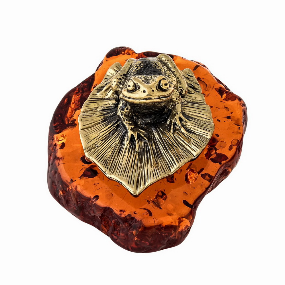 Сувенир Лягушка на листике, бронза, янтарь