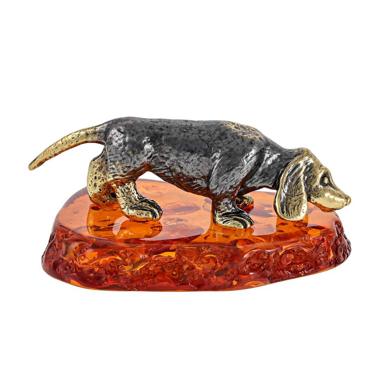 Сувенир собака такса с янтарем