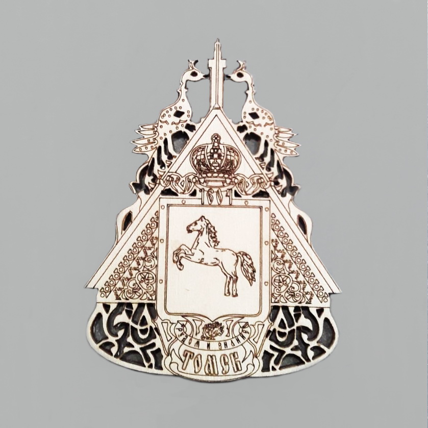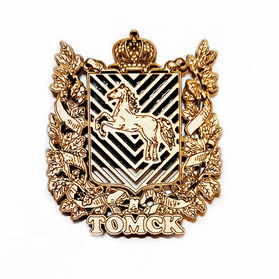 Магнит Томск Герб корона резной, дерево (Н)