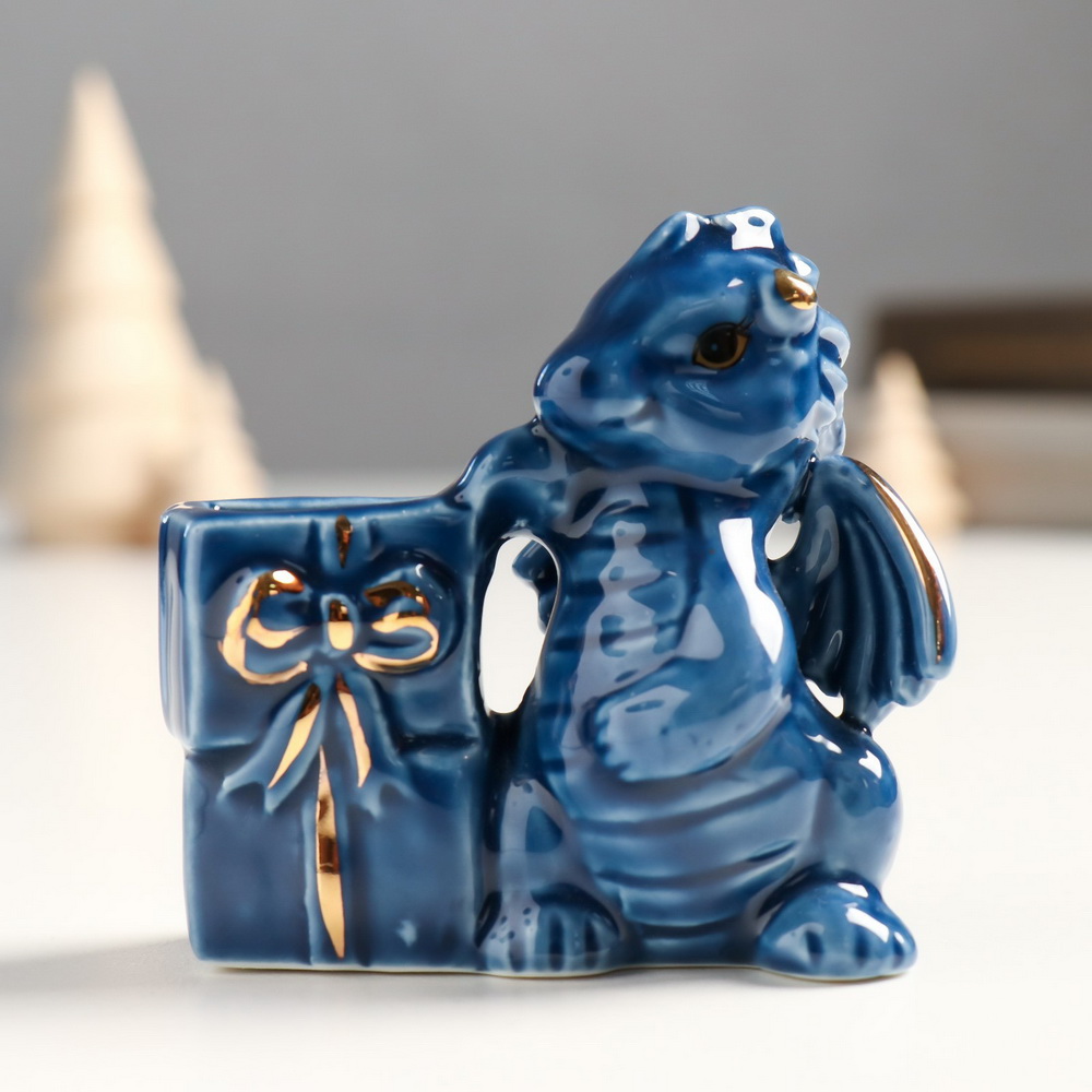 Сувенир подставка д/зубочисток "Дракоша с подарками" сине-золотой 4х6,5х7 см