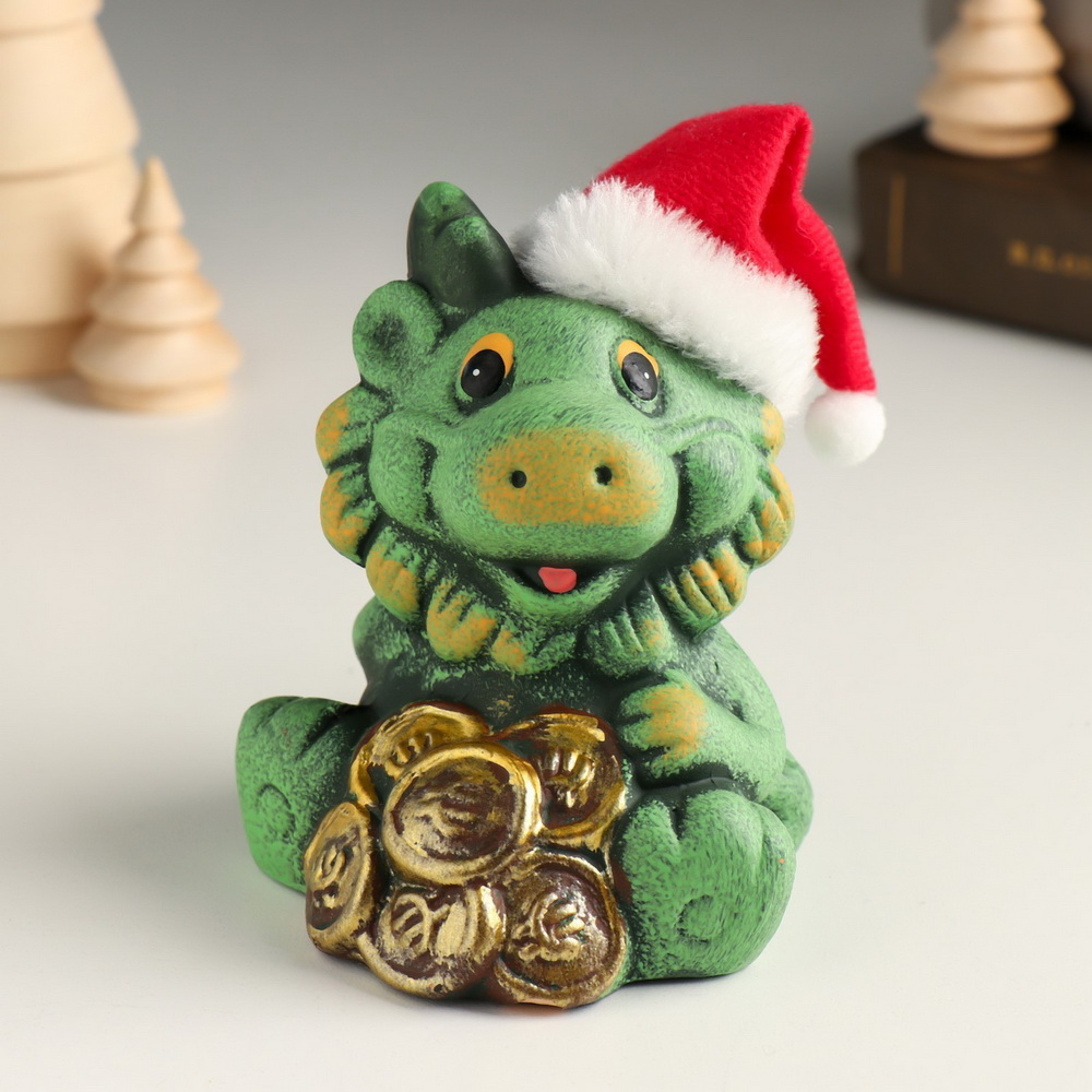 Сувенир керамика "Зелёный дракон в колпаке" 8,2х8х10,4 см
