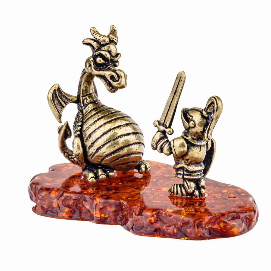 Рыцарь с драконом бронза, янтарь