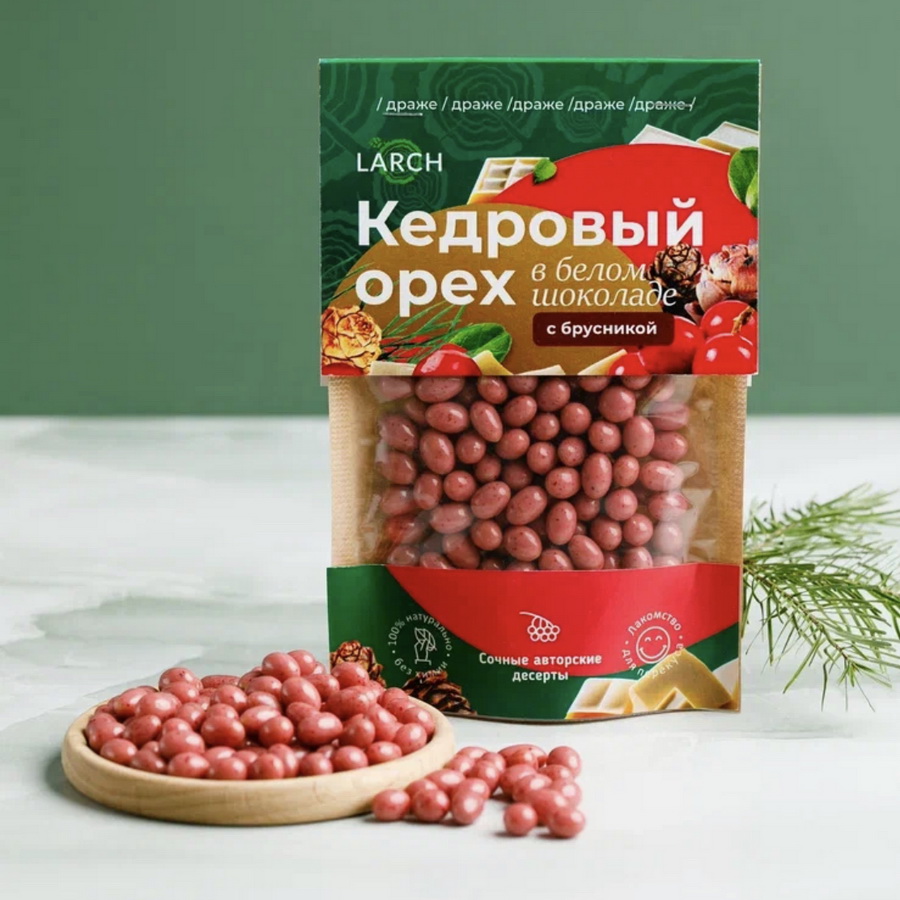 Ядро Кедровый орех в белом шоколаде с брусникой, 50 гр (СС)