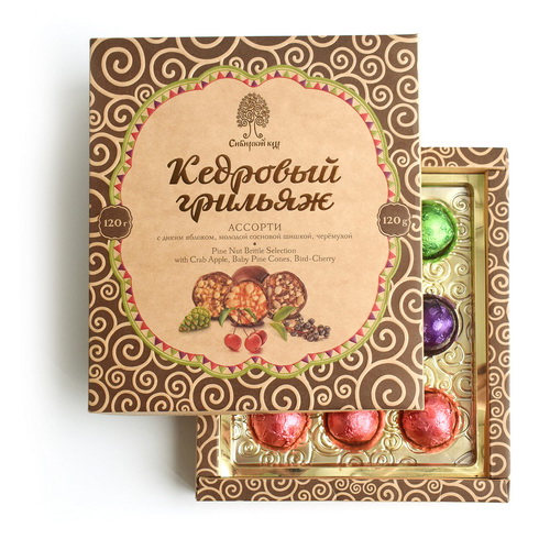 Кедровый грильяж ассорти (яблоко шишка, черемуха), 120 гр.