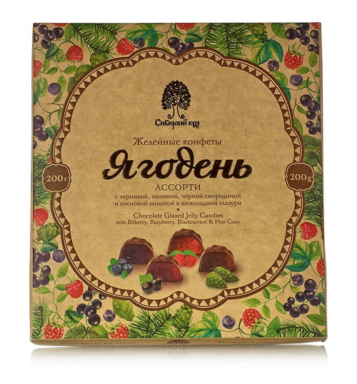 Мармелад "Ягодень" ассорти / малина, шишка, черника, черная смородина / коробка / 200 г