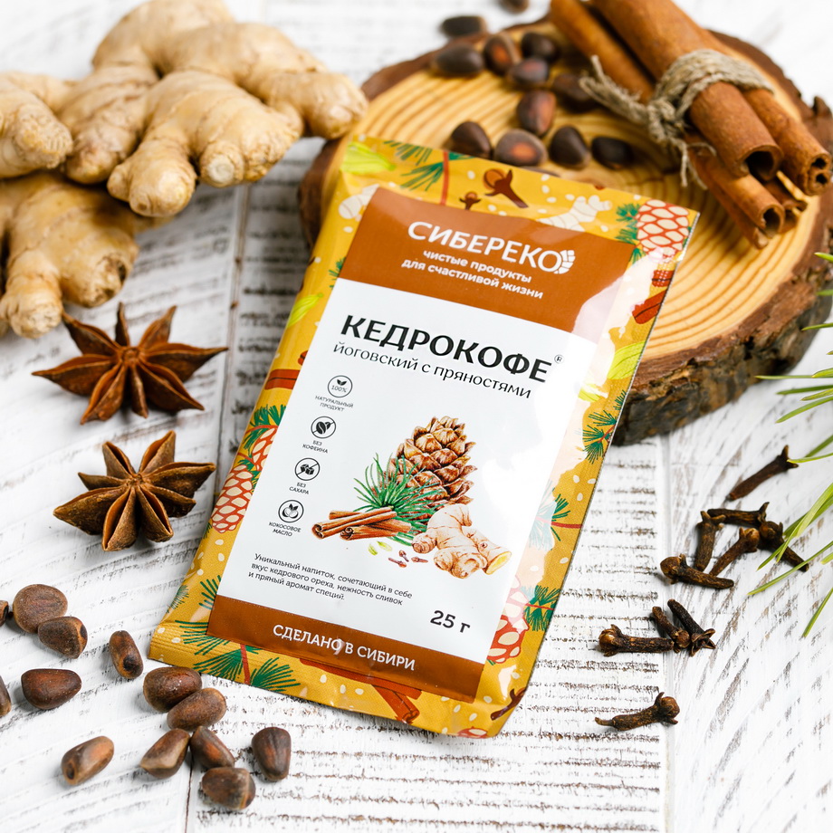 Кедрокофе «Йоговский» сочетает в себе вкус натурального ореха, растительные сливки и пряный аромат смеси-масала. Вкус «Кедрокофе» станет отличной альтернативой зарубежным какао, Nesquik и кофе «3 в 1», т.к. мы используем только натуральные ингредиенты. При заваривании напиток даёт натуральный осадок, поэтому рекомендуем использовать френч-пресс, либо кофеварку, как для молотого кофе. -